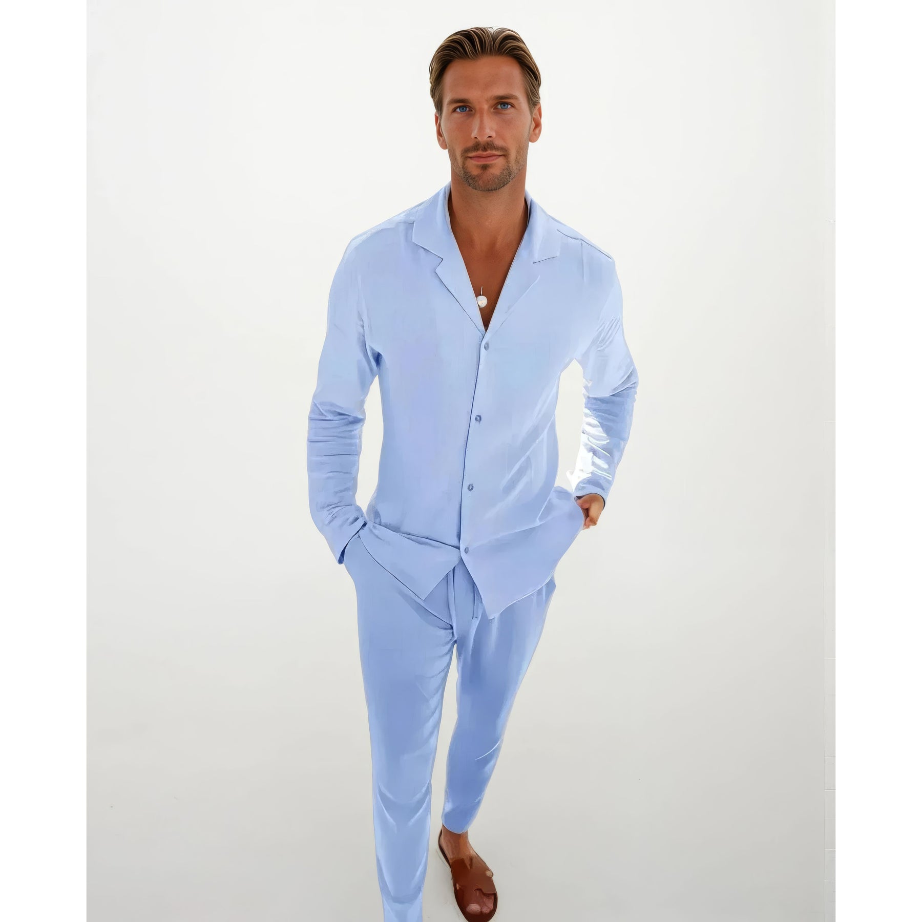 This linen set is one of those outfits you’ll want to keep as a wardrobe staple. Light, breathable, and just tailored enough to look polished without sacrificing comfort. Perfect for warm days at the beach, on a terrace, or during a summer evening stroll.